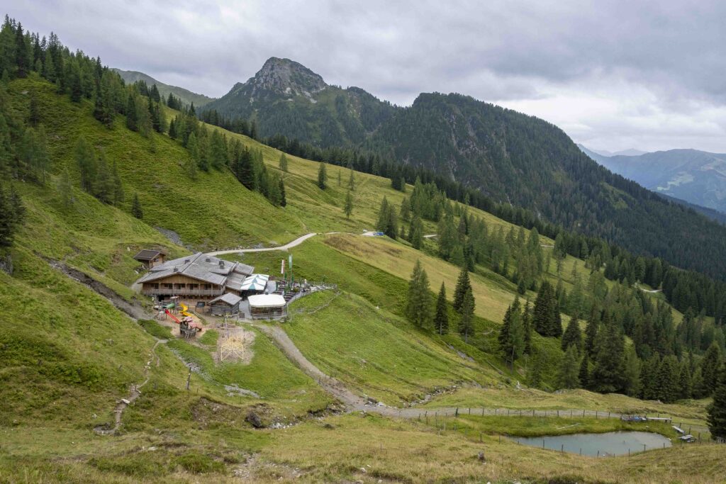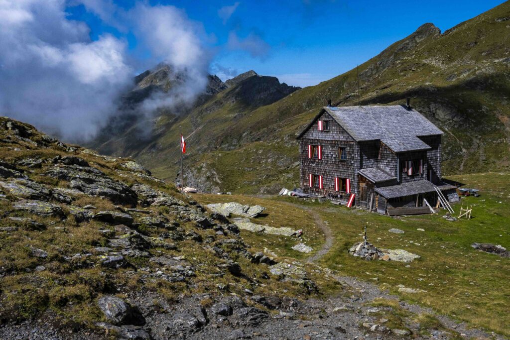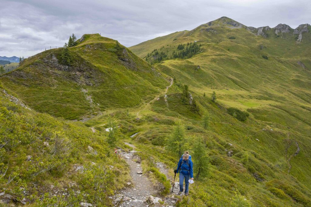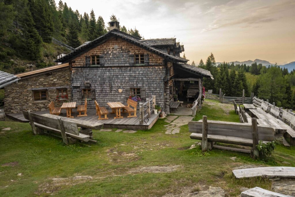 Es geht von Möllbrücke gleich einmal steil weg und man macht im Wald viele Höhenmeter. Über einige Almen und lichten Wald gelangt man zur Salzkofelhütte. Schöne, alte, urige, kleine Hütte. Super Wirtsleute, wenig Gäste. Voll gemütlich. Kein Handyempfang und das sollte in den nächsten Tagen so bleiben.